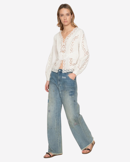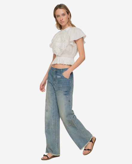 Claira刷色補丁牛仔直筒褲