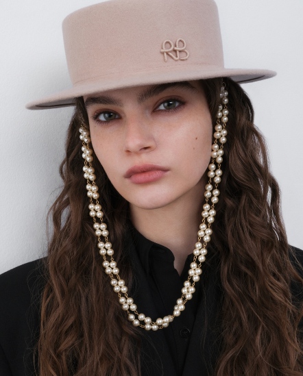 RB字珍珠串鍊毛氈平頂紳士帽/粉膚