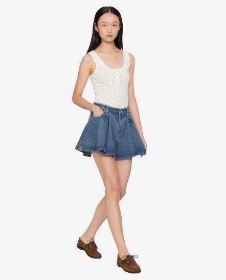 大褶襉牛仔短褲
