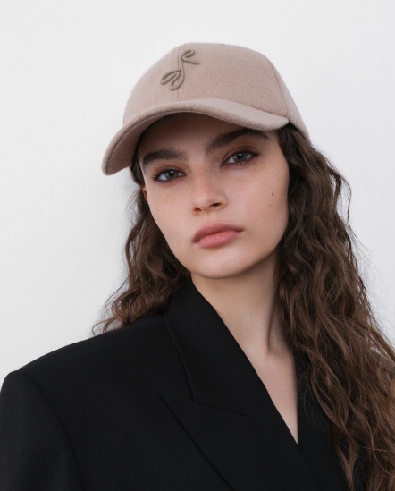 RB粗字毛料棒球帽/淺卡其