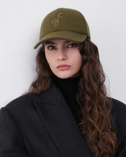 RB粗字毛料棒球帽/軍綠