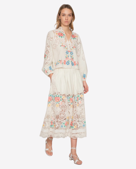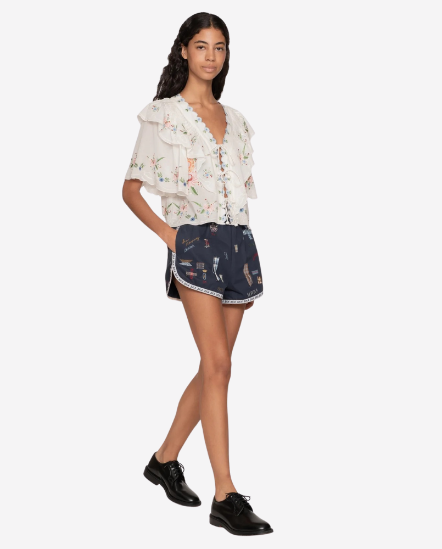 Serafina扇形花邊小蘭花短袖衣