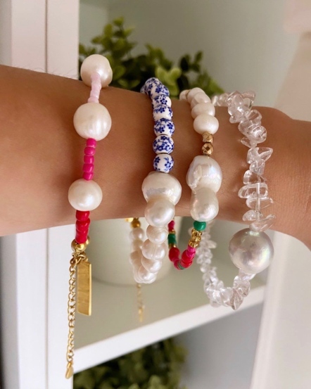 Amalfi桃黃綠圈片串接異形珍珠手鍊