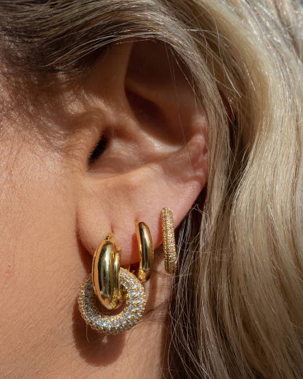 Pave Washer金屬墊圈+鑽圈多小環耳環/金色
