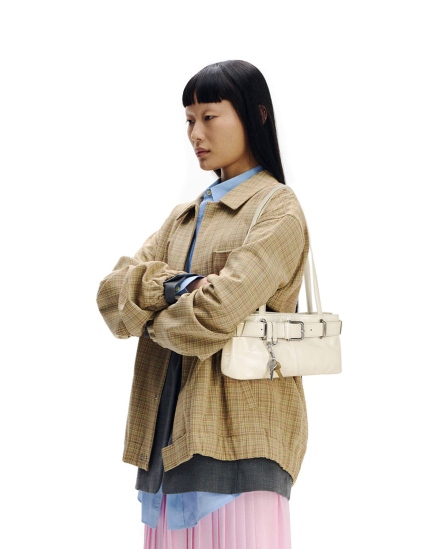 Shoulder Brocle Mini 皮扣帶長型包/奶油白