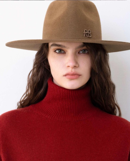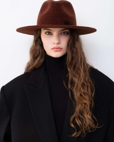 RB捲字凹陷頂毛氈紳士帽/深棕咖
