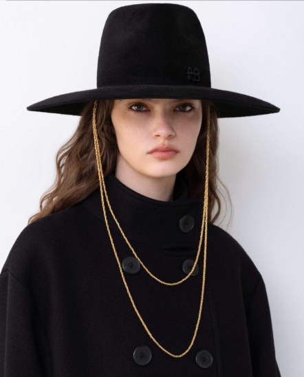 RB字金雙鍊凹陷頂毛氈紳士帽