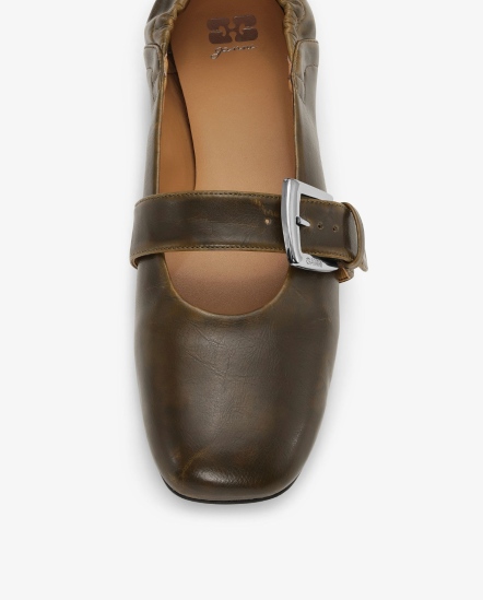 扣帶鬆緊芭蕾舞鞋/深咖啡