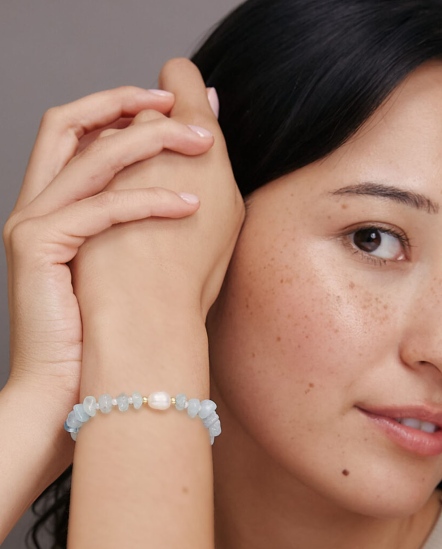 Aquamarine 海水藍寶水晶+珍珠手鍊