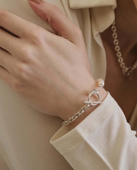 Half Chain B-雙拼鏈條珍珠吊墜手鍊