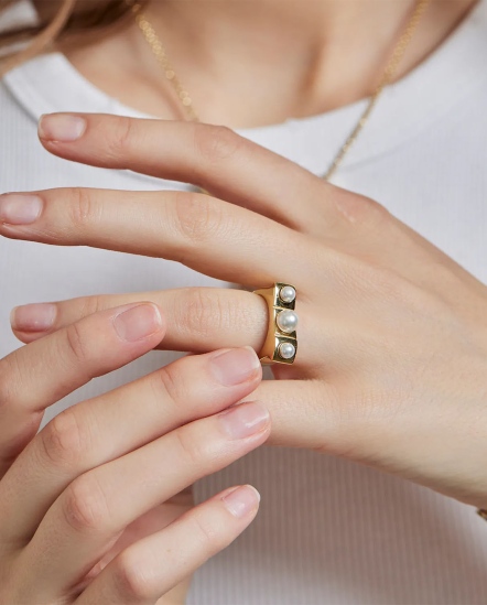Hearts in the Air-澎澎心漂浮金圈珍珠戒