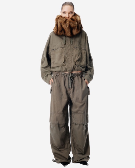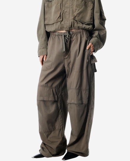 口袋抽繩工裝長褲/卡其綠