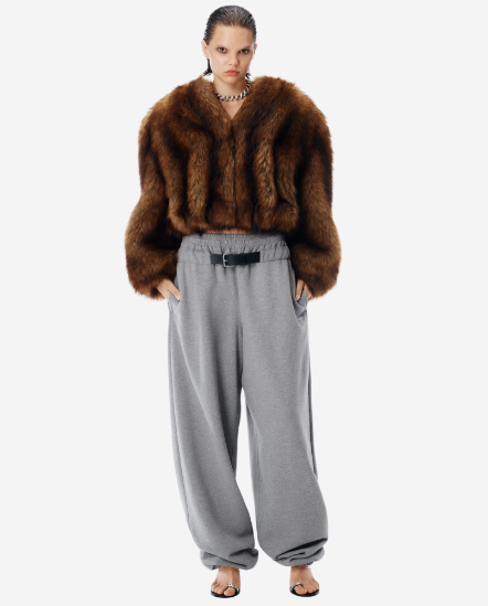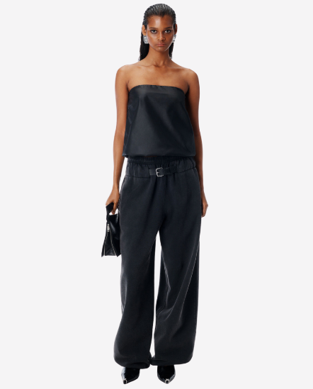 低腰皮帶縮口棉褲/黑灰