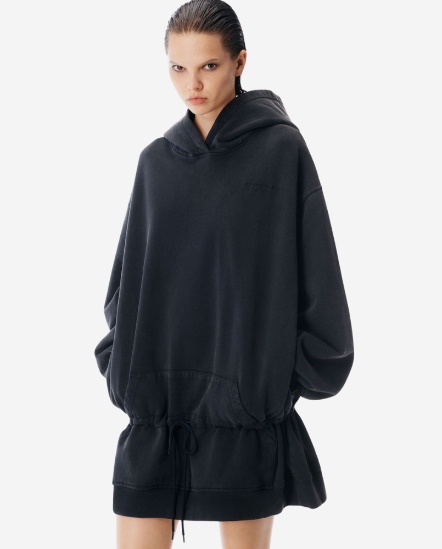 低腰抽繩帽T洋裝/黑灰