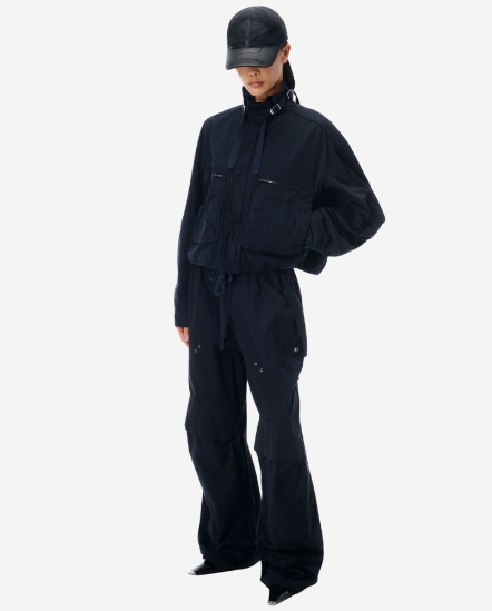 口袋抽繩工裝長褲/黑灰