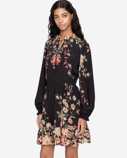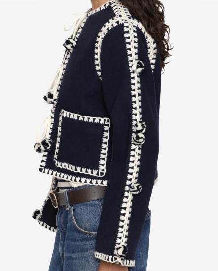 蝴蝶徽標抽繩尼龍長版外套/黑色