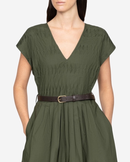 蝴蝶徽標抽繩尼龍長版外套/軍綠