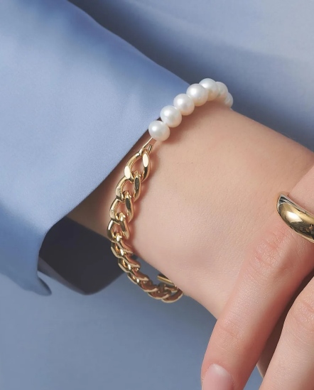 獨家/8mm珍珠金屬鍊條串接項鍊
