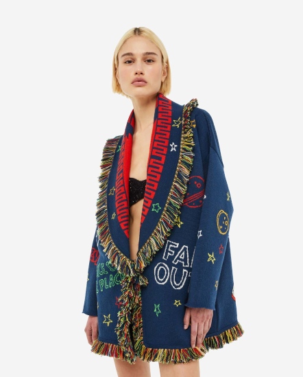 火星人緹花印花流蘇長版針織外套