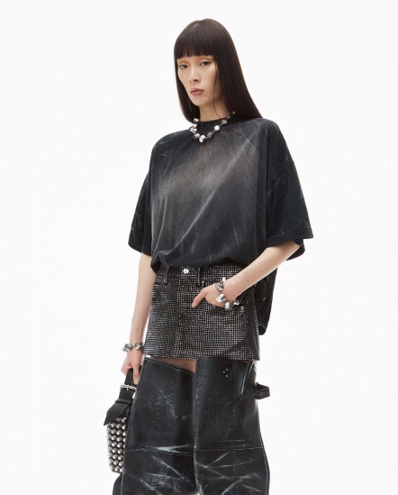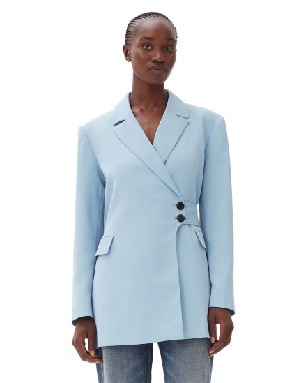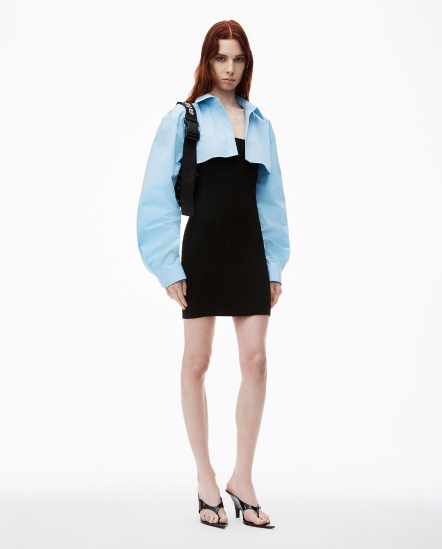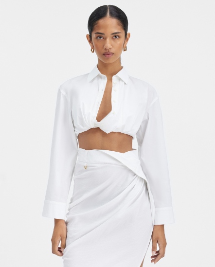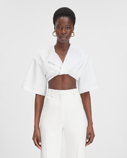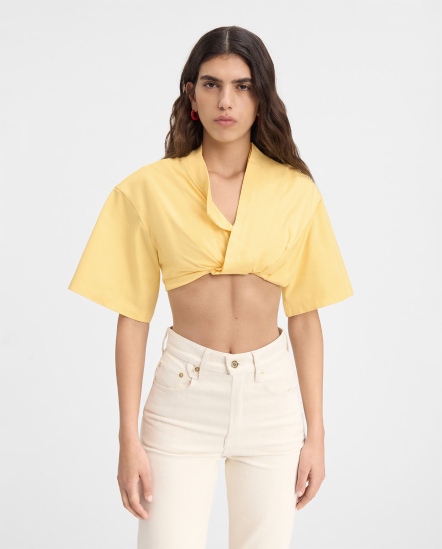 扭紋垂褶下擺短版襯衫上衣/淡黃