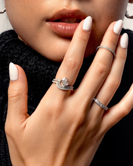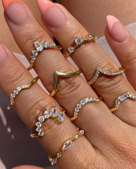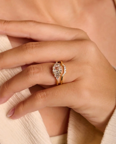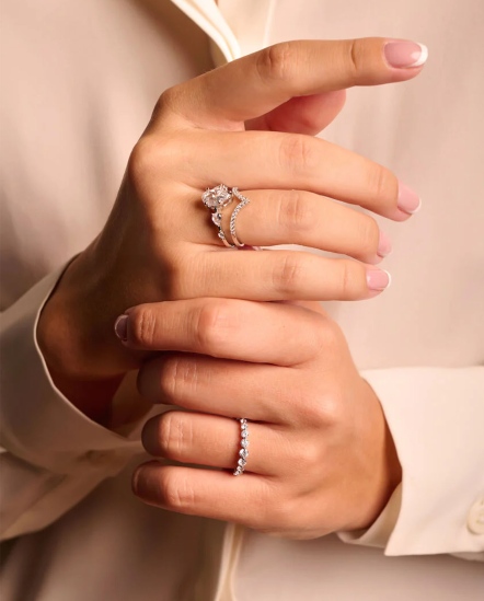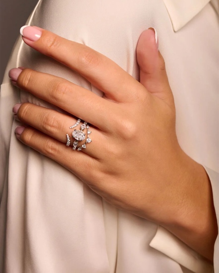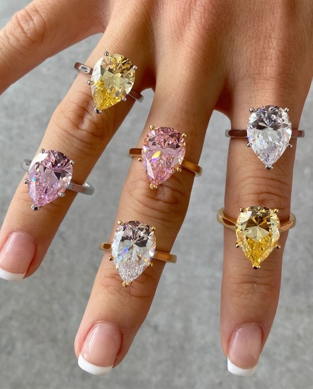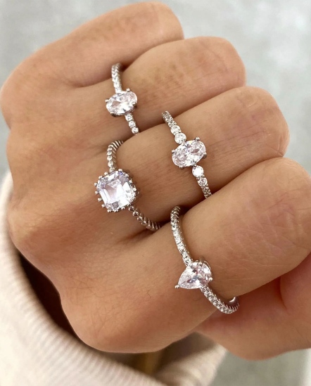 OREA-鵝蛋多面切割鑽帶鑽圈戒指