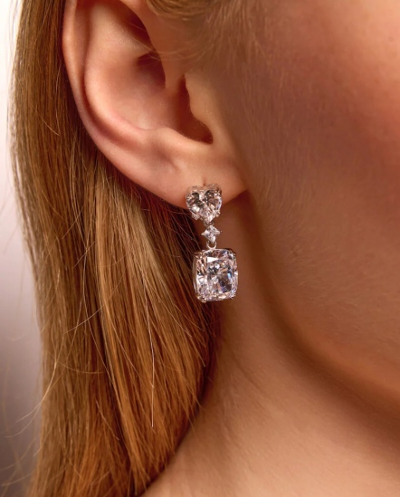 Heart X Cushion Drop-愛心立方吊墜耳環