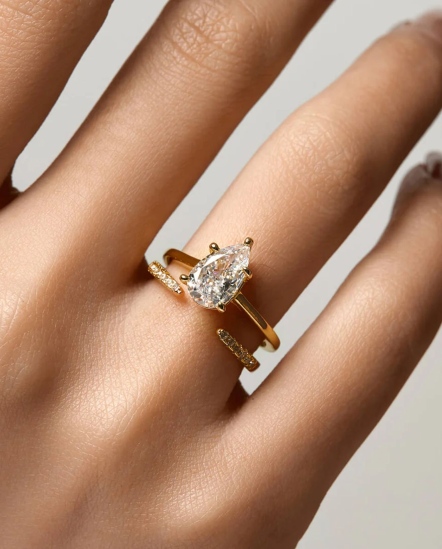 Lavo Dainty Pear cut-梨型單鑽排鑽細戒