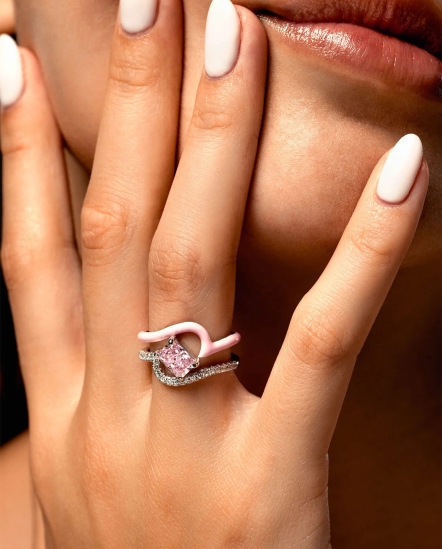 Enamel Perle Pink-水滴鑽尖點粉色戒