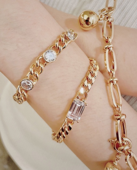 Dazed 粗版滿碎鑽鎖鏈方扣飾手鏈-17.5cm
