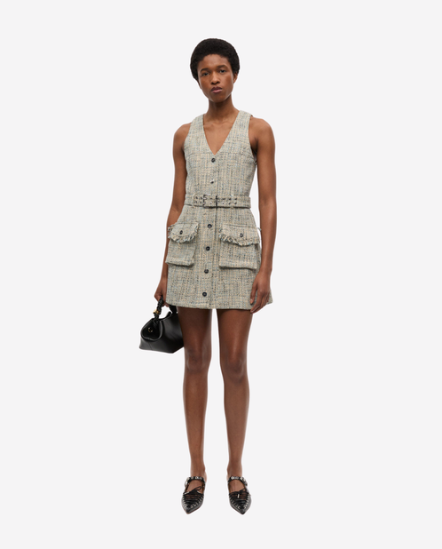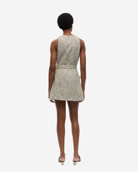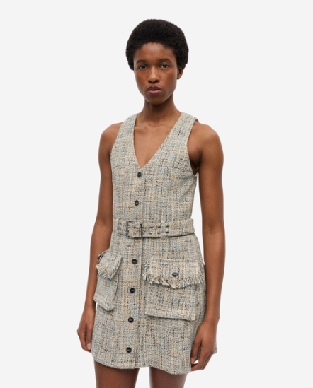 混色紋毛呢無袖洋裝