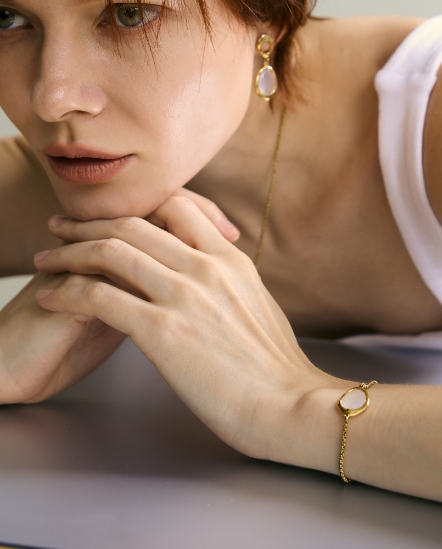 飾品材質:316 抗敏不銹鋼 / 真空電鍍 / 藍玉髓