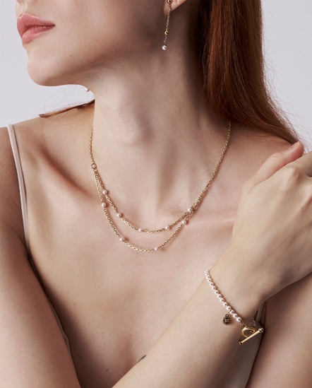 |材質:316 抗敏不銹鋼、真空電鍍、4mm珍珠