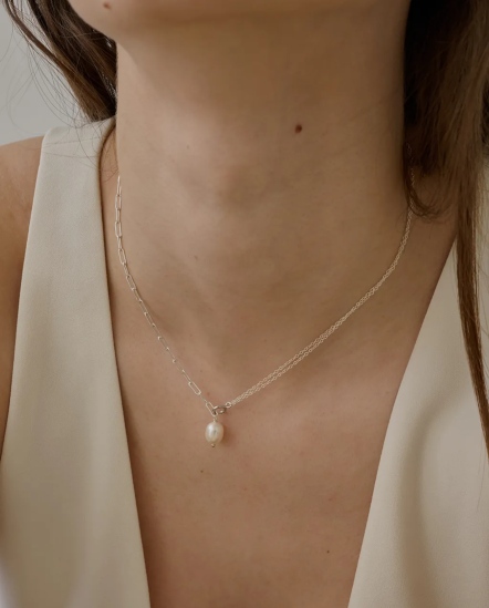 |材質:100% 天然巴洛克珍珠、高品質925純銀
