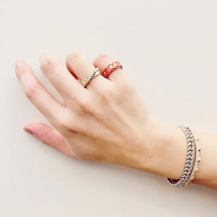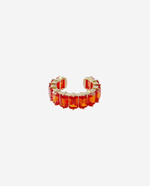 Kiki 滿排方鑽C型戒指-珊瑚紅