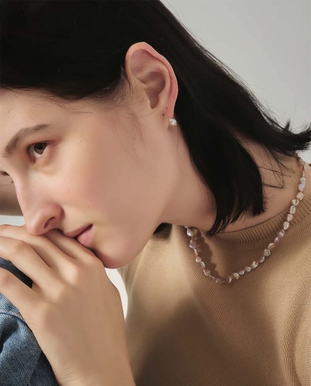 |材質:100%天然巴洛克珍珠、18K厚真金鍛壓