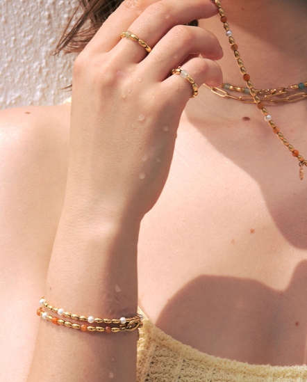 |材質:316 抗敏不銹鋼、真空電鍍、4mm珍珠、綠東陵玉