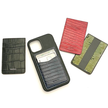 Shawn 蜥蜴紋真皮手機卡夾/紅色