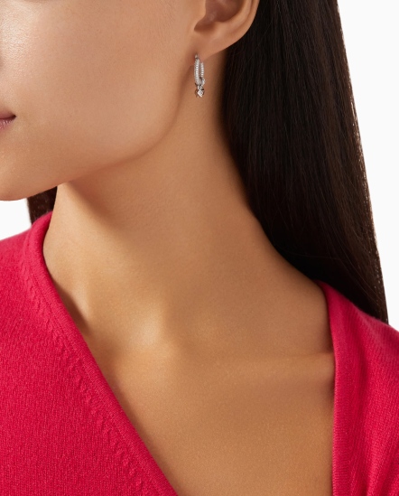 Bezel Stone Shaker多吊墜密鑽圈耳環/銀色