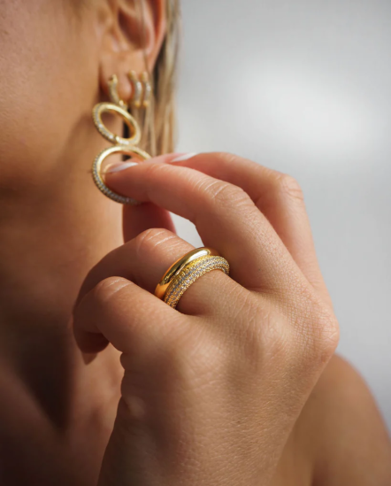 Pave Washer金屬墊圈+鑽圈多小環耳環/金色