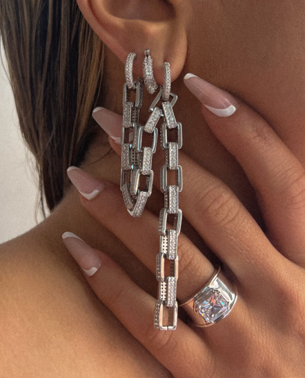 The Jagger Chain密鑽雙圈方鏈條耳環/單/銀色